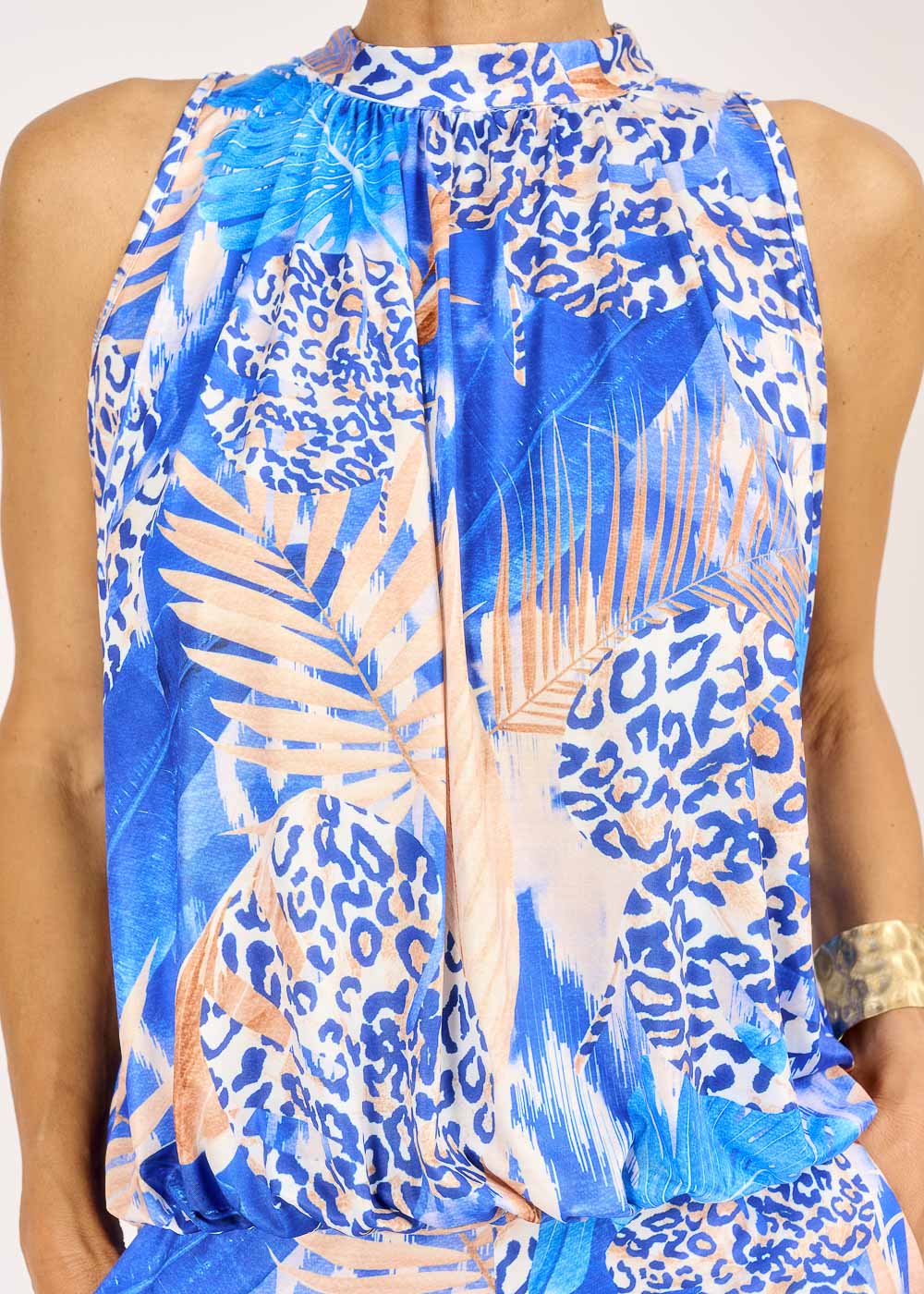 Stylisch und farbenfroh durch den Sommer – dieses Neckholdertop im angesagten Animalprint in Blau ist ein echtes Statement-Piece. Der raffinierte Schnitt setzt die Schultern gekonnt in Szene und sorgt für einen femininen Look. Leicht und luftig begleitet dich das Top modisch durch warme Tage und zieht garantiert alle Blicke auf sich.