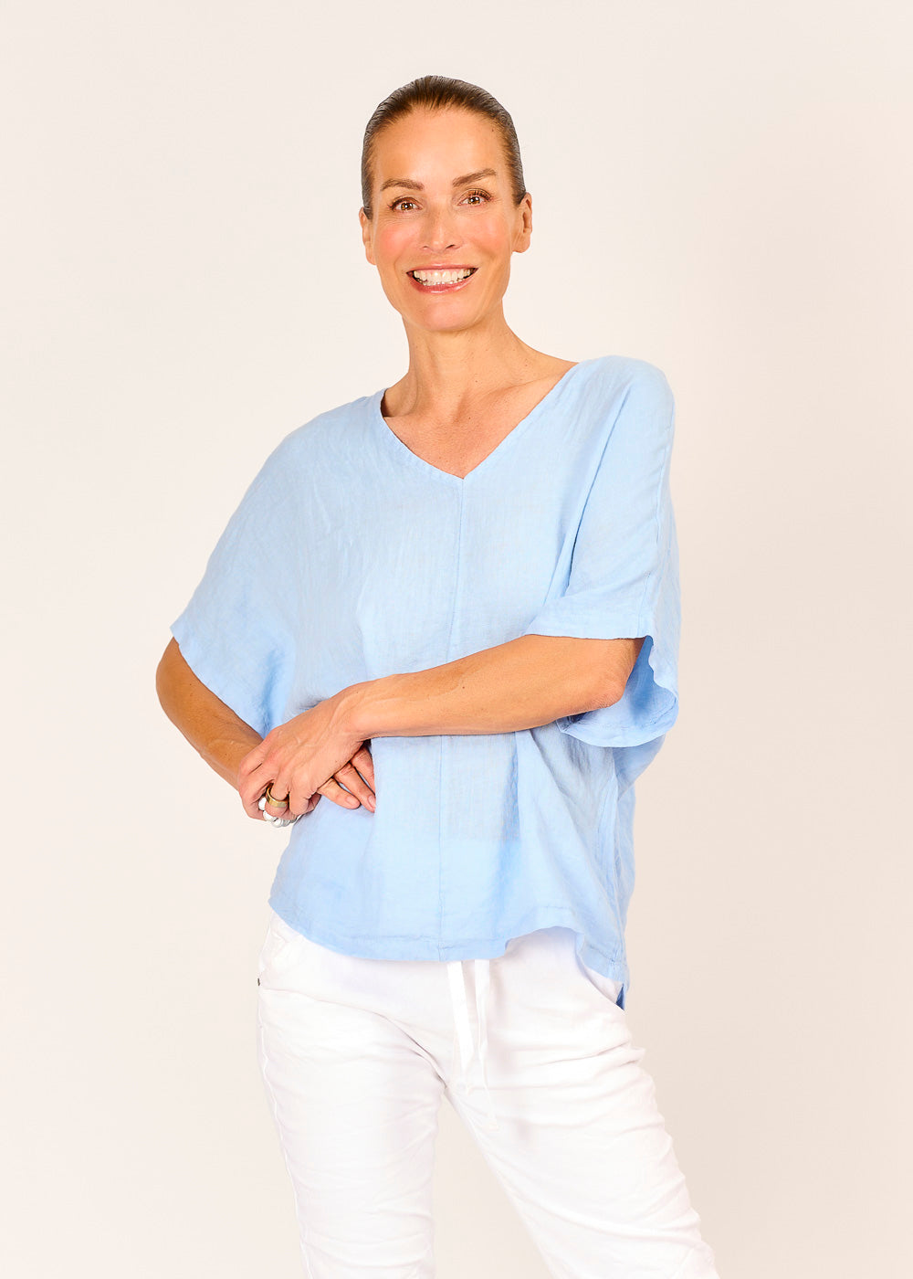 Schweben Sie wie auf Wolken mit dieser traumhaften Leinentunika in himmlischem Cielo-Blau! Der leichte Leinenstoff und der entspannte Schnitt schenken Ihnen ein unvergleichlich luftiges Tragegefühl, perfekt für warme Tage und entspannte Stunden. Ob für den Urlaub, einen gemütlichen Nachmittag oder einen stilvollen Spaziergang – diese Tunika ist Ihr neues Lieblingsstück für unbeschwerte Eleganz.