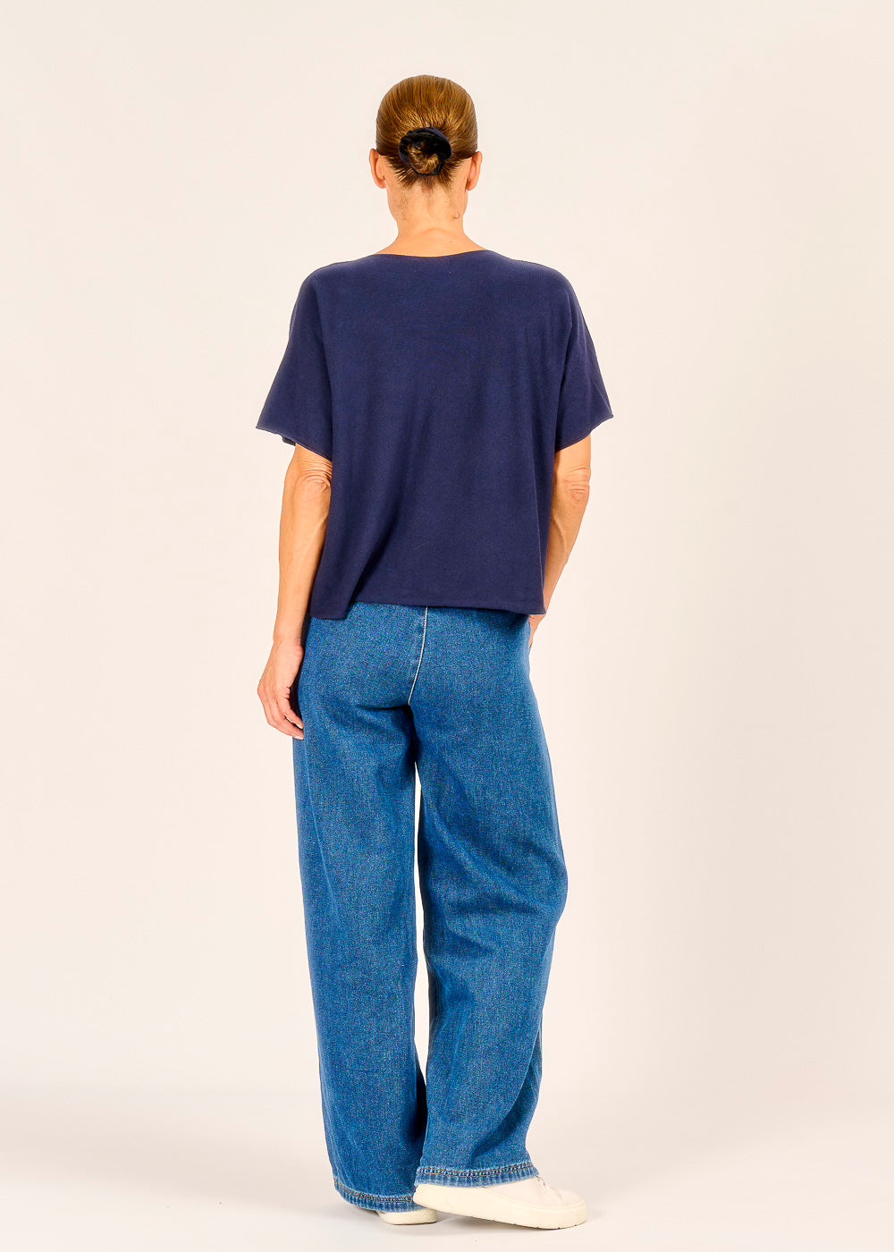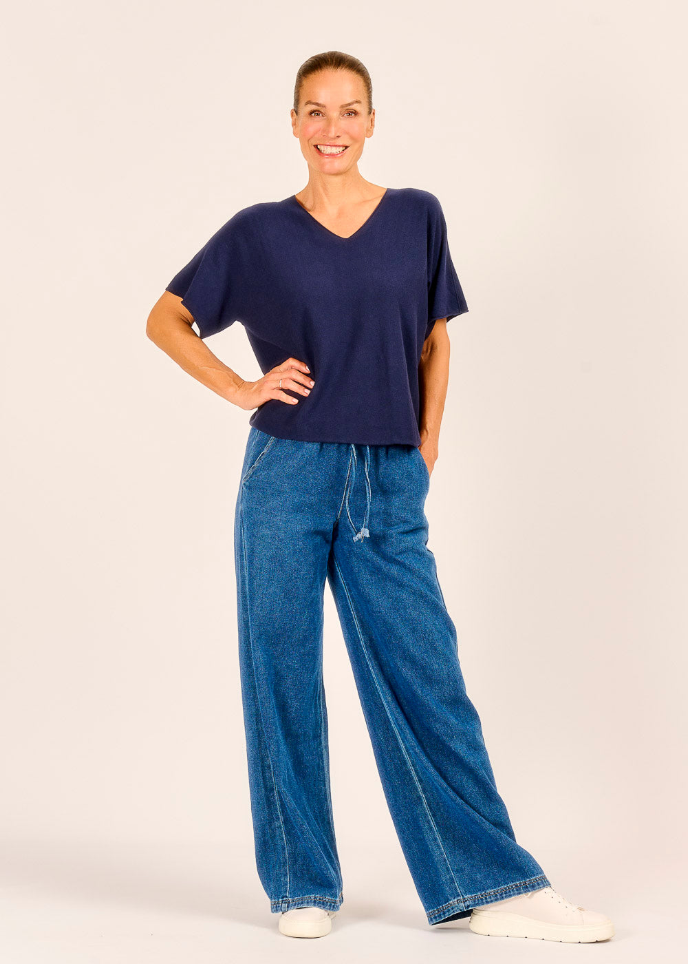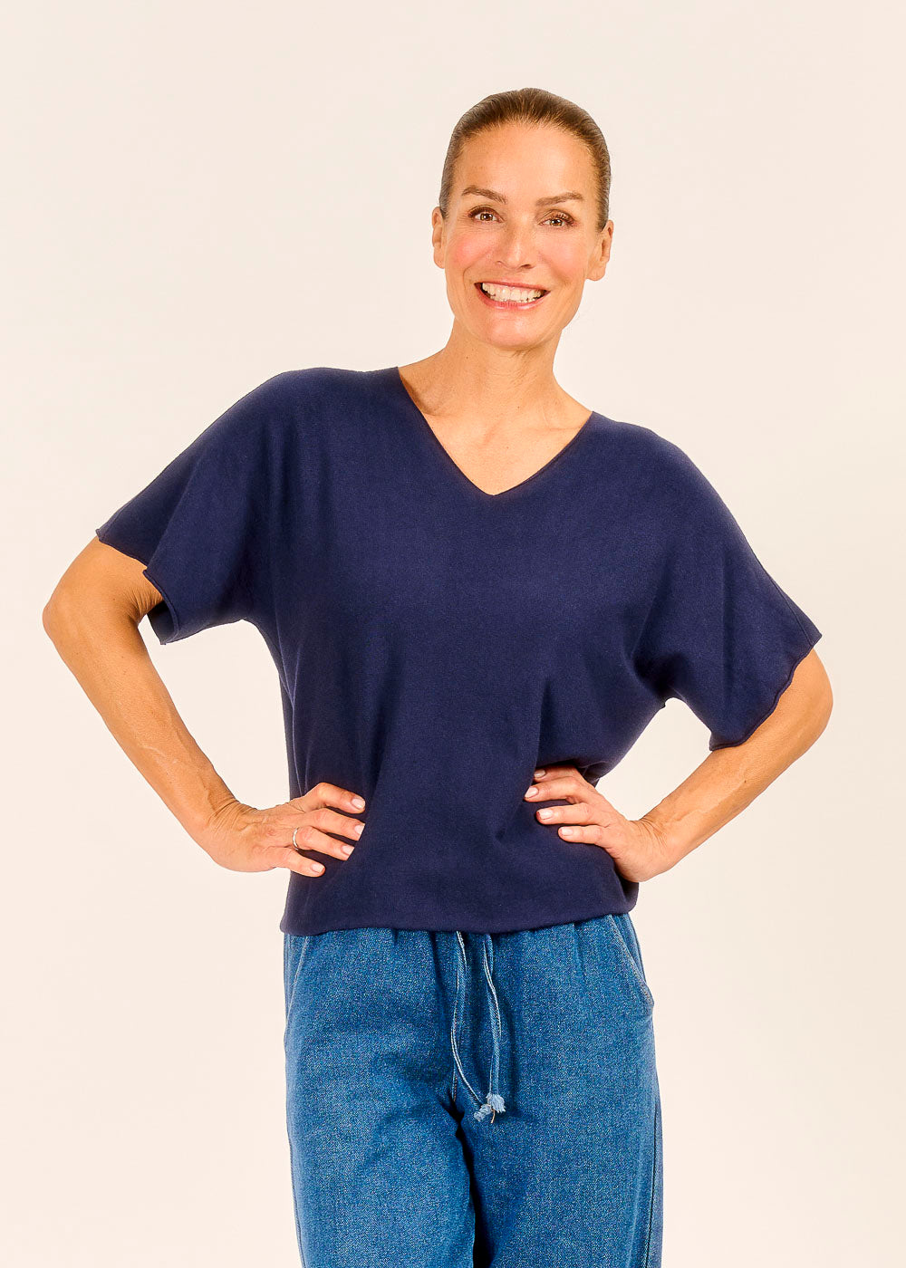 Entdecken Sie unseren eleganten V-Pullover in tiefem Blu Scuro, der jedem Outfit eine Note von lässiger Raffinesse verleiht. Der schmeichelhafte V-Ausschnitt und der lockere Schnitt bieten höchsten Komfort und Vielseitigkeit, ideal für stilvolle Auftritte. Kombinieren Sie ihn mit Jeans für einen entspannten Tageslook oder mit einer schicken Hose für einen mühelosen Abend-Chic.