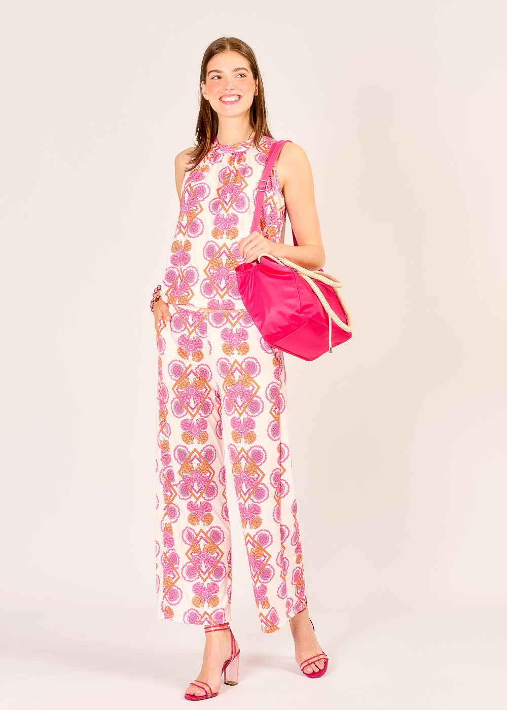 Dieser lässige Jogger mit einem lebhaften Muster in leuchtendem Fuchsia ist ein echtes Statement-Piece für Ihre Freizeitgarderobe. Der weiche Stoff und der bequeme Schnitt garantieren höchsten Tragekomfort und eine optimale Passform. Kombinieren Sie ihn für einen durchgängigen Look mit dem passenden Top und setzen Sie so ein modisches Statement.