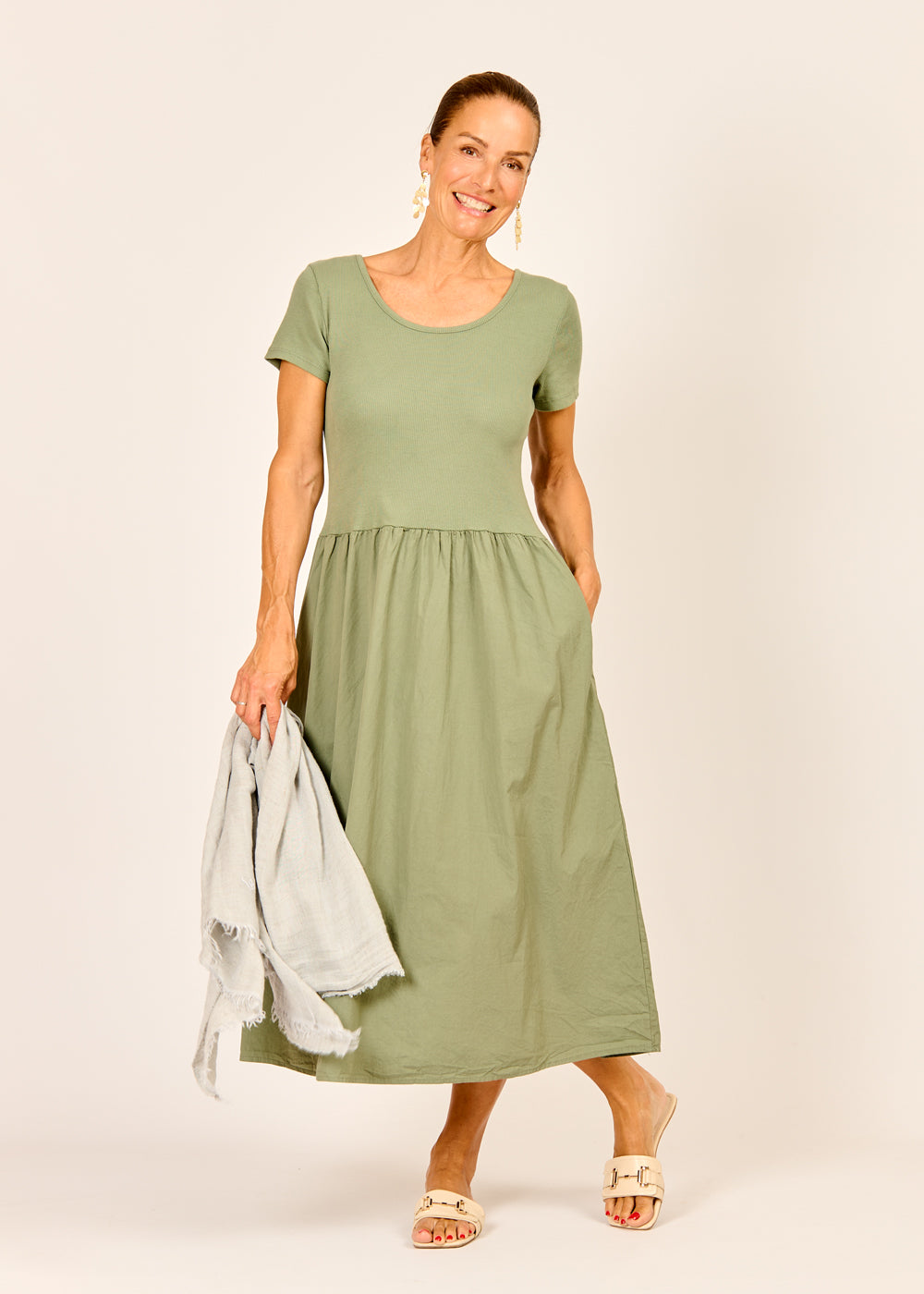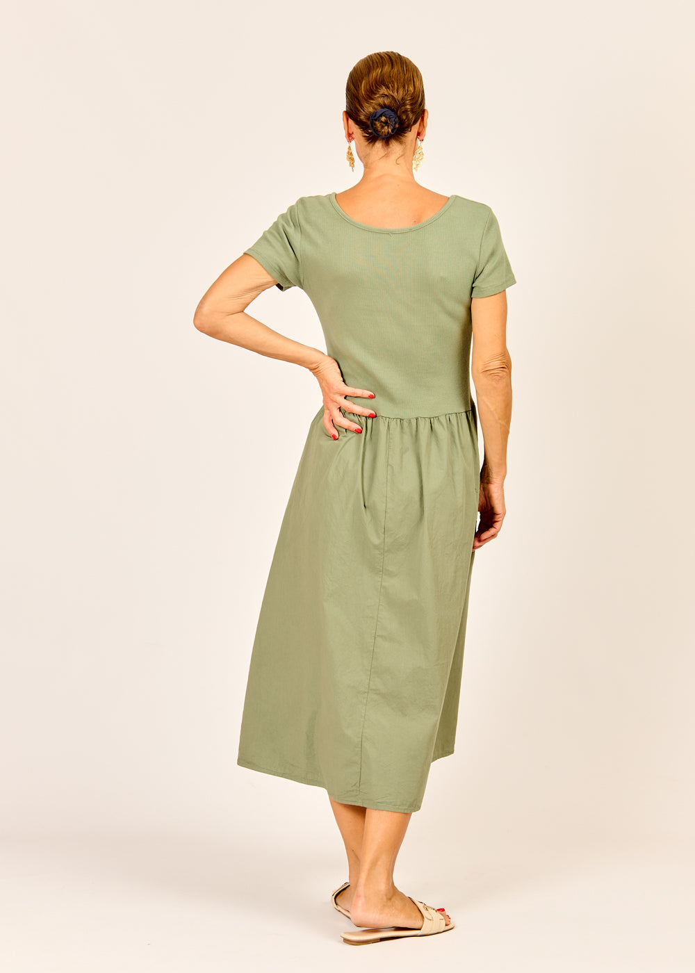 Entdecken Sie unser charmantes Shirtkleid in der angesagten Farbe Militärgrün – ein Must-have für entspannte Sommertage. Der bequeme Schnitt und das weiche Material garantieren höchsten Tragekomfort, während die praktischen Taschen den lässigen Look perfekt abrunden. Kombinieren Sie es mit Sandalen für einen mühelosen Alltags-Look oder mit eleganten Accessoires für einen Abend unter freiem Himmel.