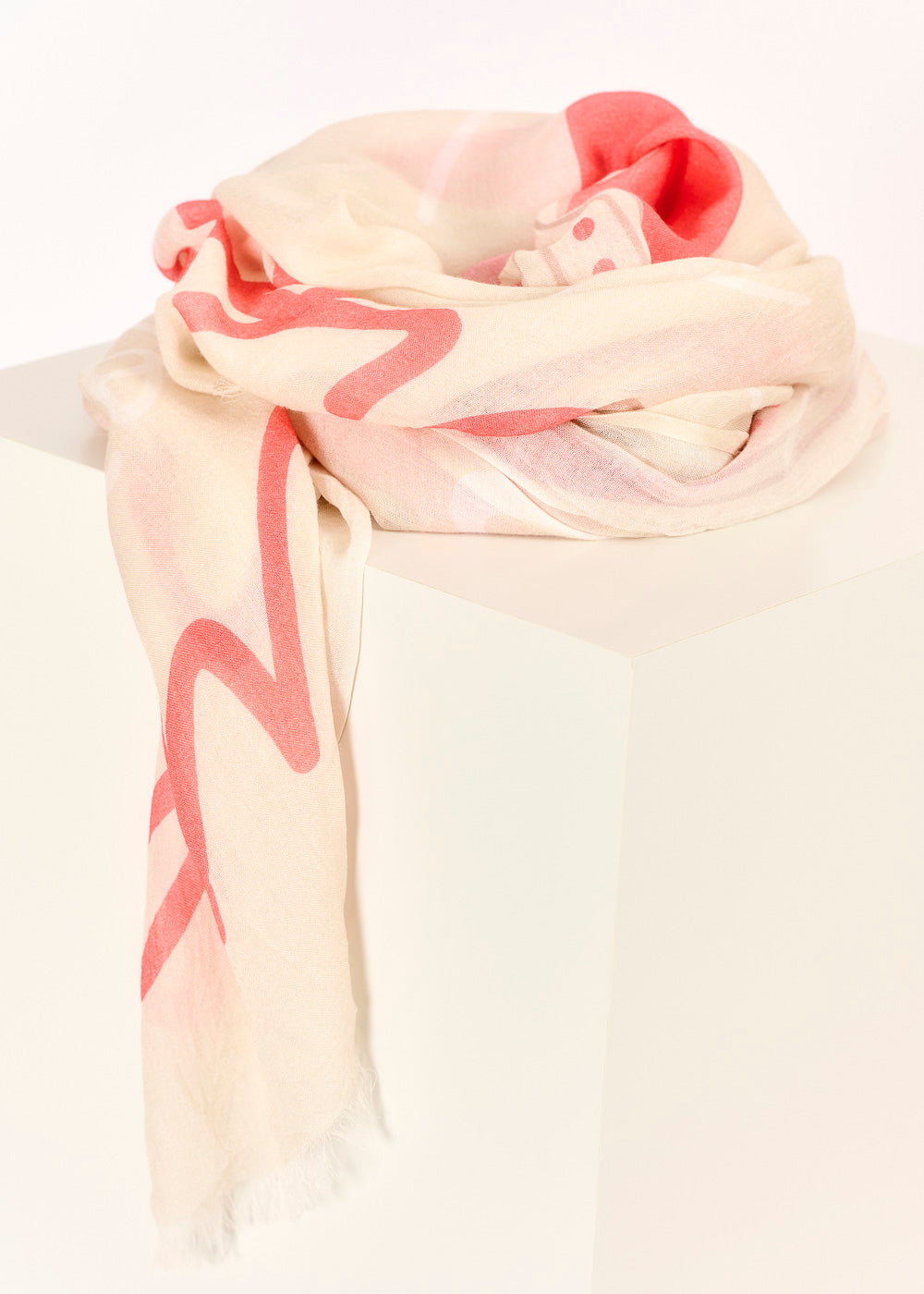 Dieses leichte Tuch in zartem Beige begeistert mit einem verspielten „Amore“-Muster und sorgt für einen Hauch Romantik in jedem Look. Die luftige Qualität macht es zum idealen Accessoire für warme Tage und stilvolle Auftritte.