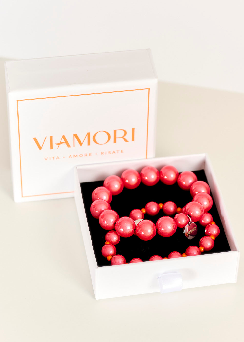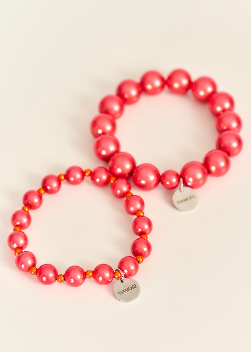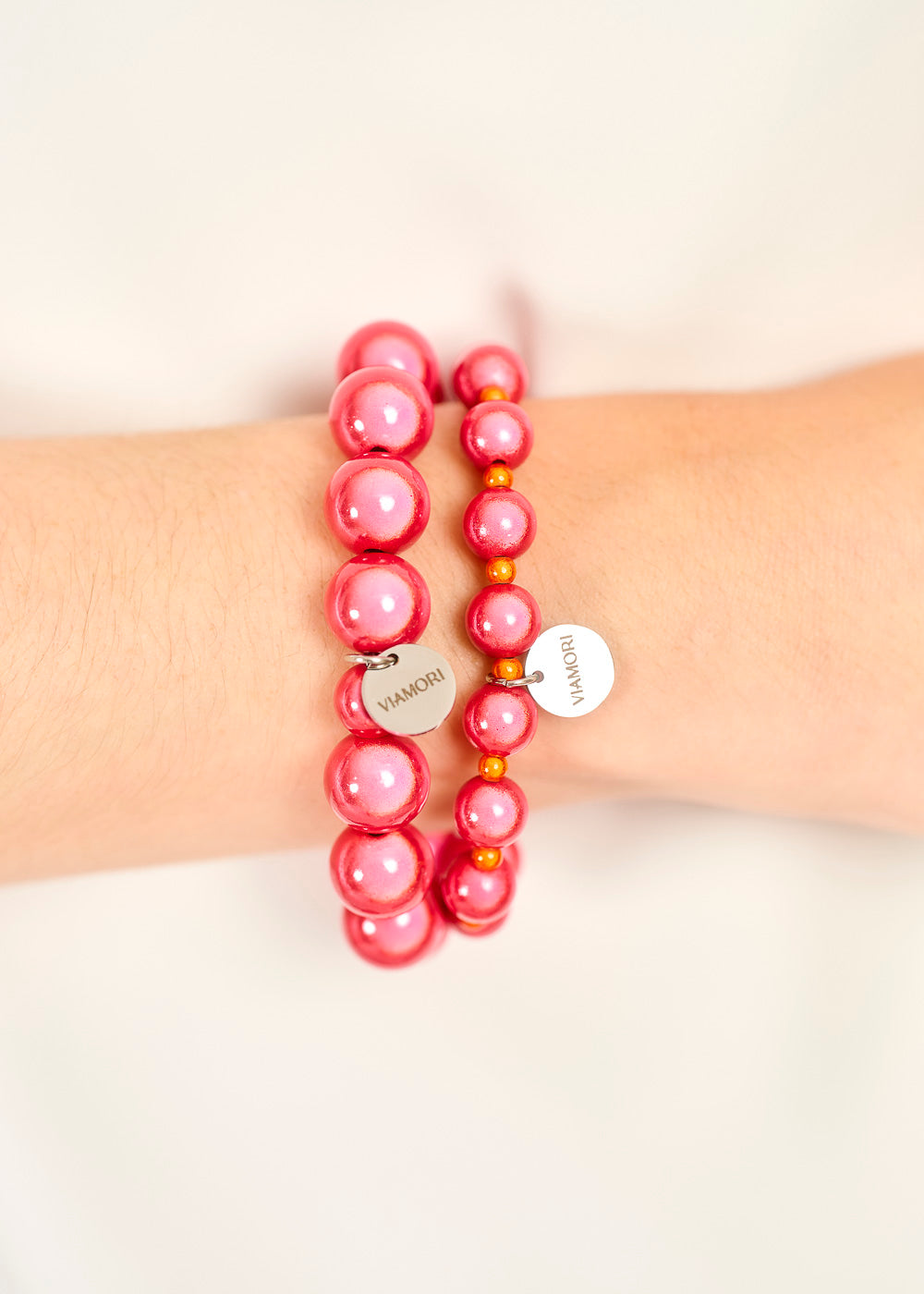 Dieses strahlende Armband-Set in leuchtendem Fuxia Ton verleiht jedem Handgelenk eine fröhliche und elegante Ausstrahlung. Die Kombination aus unterschiedlich großen Perlen und feinen Details macht es zu einem charmanten Accessoire für sommerliche Looks.