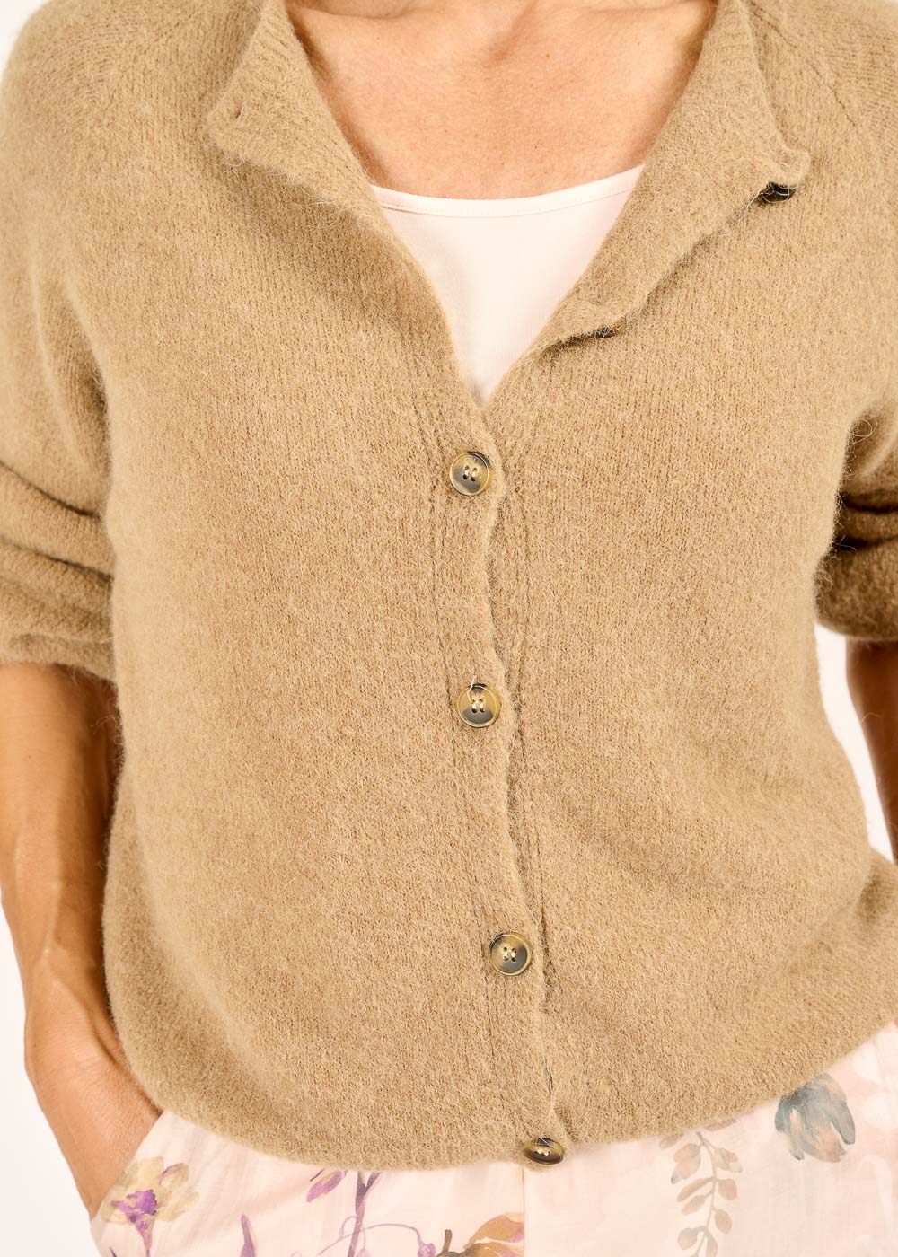 Dieser modische Cardigan, gefertigt aus einer luxuriösen Mischung mit Baby Alpaka Garn, verspricht unschlagbaren Komfort und eine unwiderstehlich weiche Haptik. Sein zeitloses Design und die natürliche Farbe machen ihn zu einem vielseitigen Begleiter, der jedem Outfit eine edle Note verleiht. Perfekt für kühle Abende oder als stilvolles Layering-Stück, das Sie nicht mehr missen möchten.