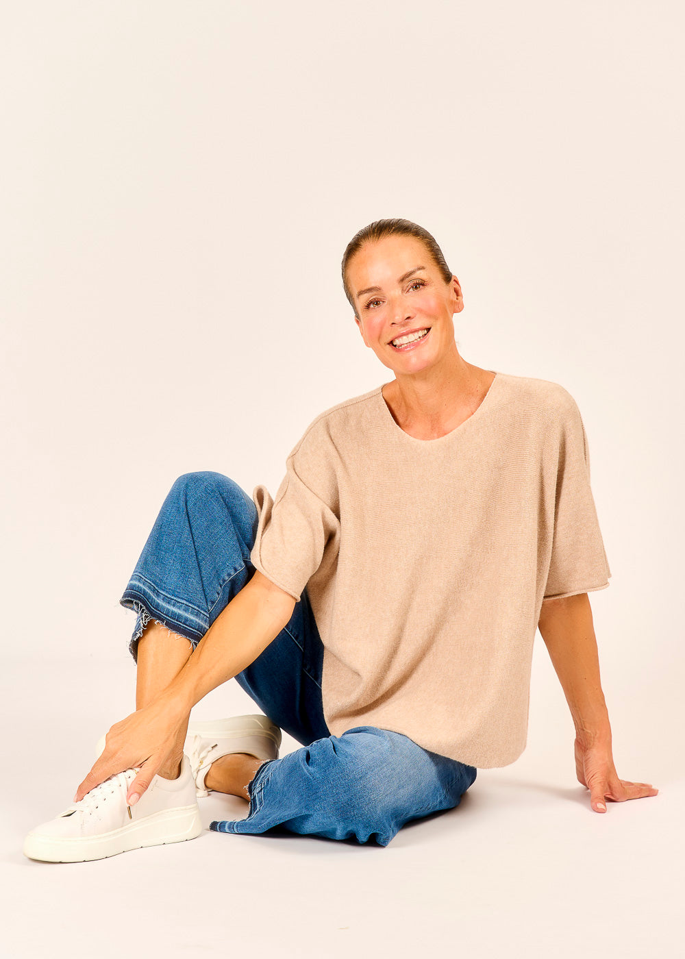 Dieser lässige Pullover in der warmen Farbe Sand ist ein absolutes Must-have für entspannte Tage mit Stil. Sein bequemer V-Ausschnitt und der lockere Schnitt machen ihn zum perfekten Begleiter für eine unaufgeregte Eleganz, die sich jedem Anlass anpasst. Kombinieren Sie ihn mit Jeans oder einer schicken Hose, um einen makellosen Look zu kreieren, der Komfort und Chic vereint.