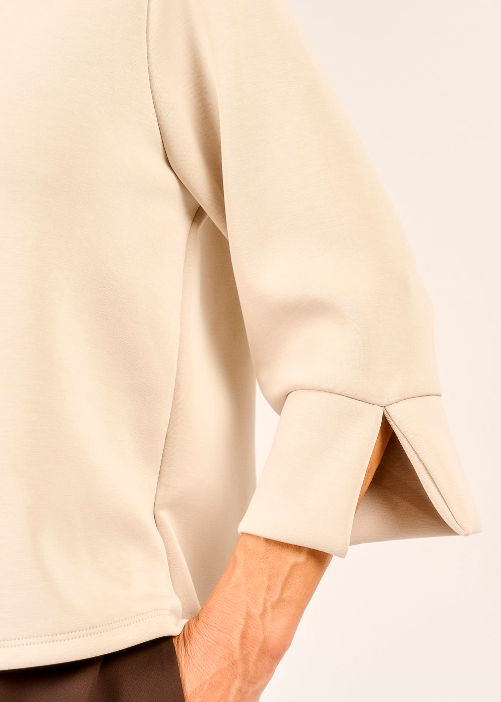 Dieses moderne Kastenshirt in elegantem Beige besticht durch seinen raffinierten Schnitt und den dezenten Schlitz, der dem Design eine besondere Note verleiht. Die klare Linienführung und die edle Farbe machen es zu einem vielseitigen Essential, das sich mühelos in jede Garderobe integrieren lässt. Ob lässig oder schick kombiniert, dieses Shirt verleiht jedem Outfit eine zeitlose Eleganz und einen Hauch von urbaner Coolness.