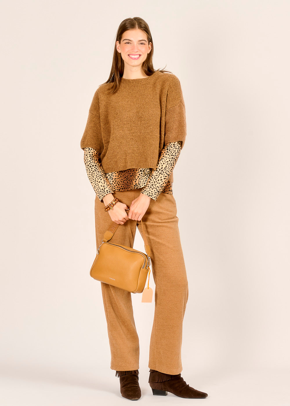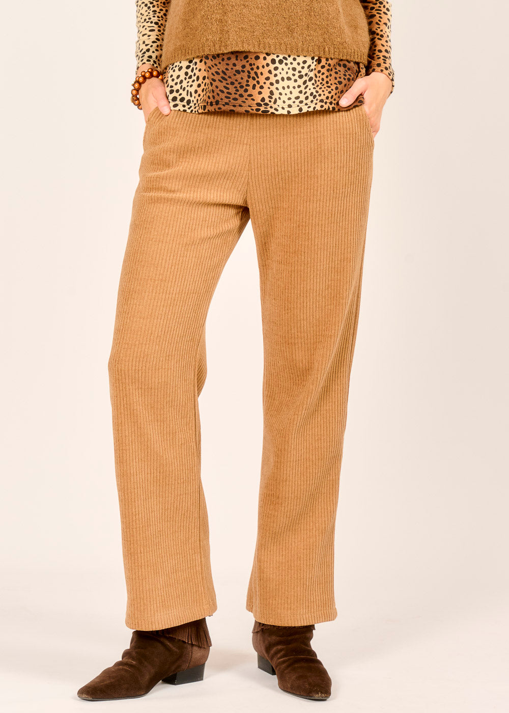 Unsere Cord-Pantalone in warmem Caramello strahlt zeitlose Eleganz mit einem Hauch von Retro-Charme aus. Der weiche Cordstoff umschmeichelt die Beine, während der schmeichelhafte Schnitt vielseitige Stylingmöglichkeiten – von lässig bis elegant – erlaubt. Ein perfektes It-Piece für alle, die Komfort und Stil mühelos verbinden möchten.