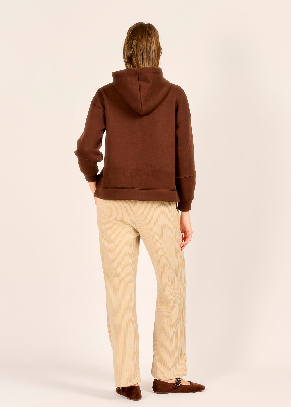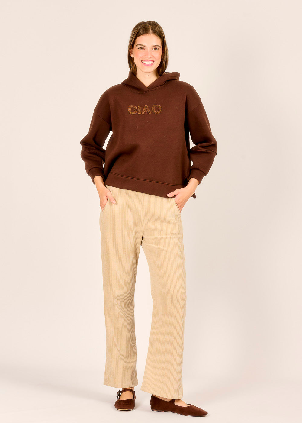Unser CIAO Hoody in tiefem Moka ist der Inbegriff von lässigem Komfort mit urbanem Style. Die weiche, hochwertige Qualität schmiegt sich sanft an und sorgt für ein Wohlfühlgefühl den ganzen Tag. Mit seinem entspannten Schnitt und dem dezenten, modernen Look wird er schnell zum Lieblingspiece für jeden Casual-Look.