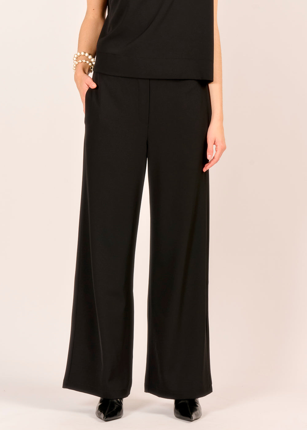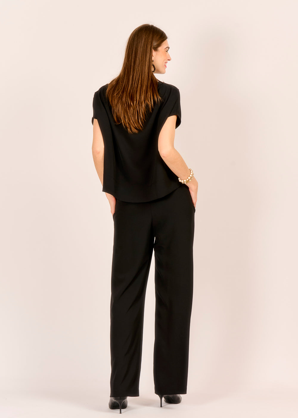 Diese elegante Hose in tiefem Nero ist das Herzstück eines jeden anspruchsvollen Outfits und verkörpert pure Raffinesse. Ihr fließender Fall und der makellose Schnitt schaffen eine Silhouette von unaufdringlicher Eleganz, die jeden Look sofort aufwertet. Ein zeitloses Essential, das Ihnen eine souveräne Ausstrahlung verleiht und Sie für jeden Anlass perfekt kleidet.