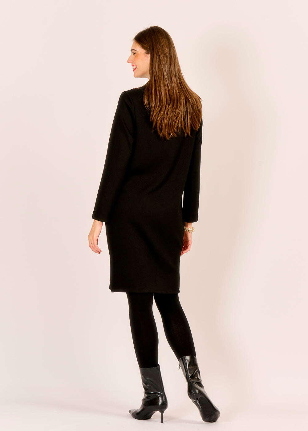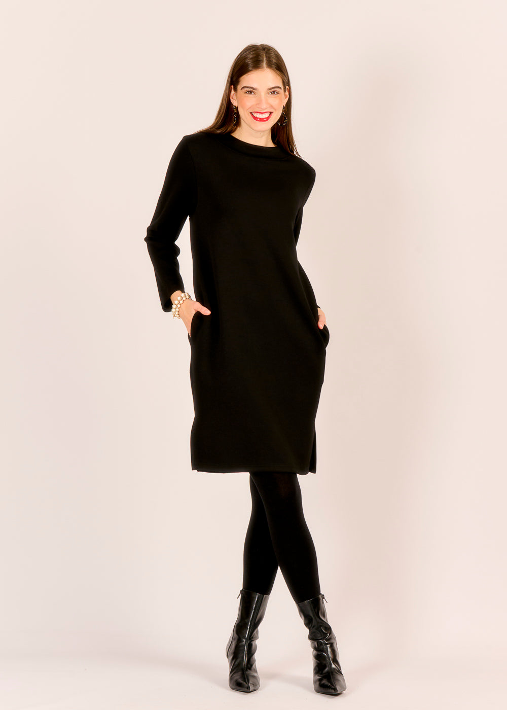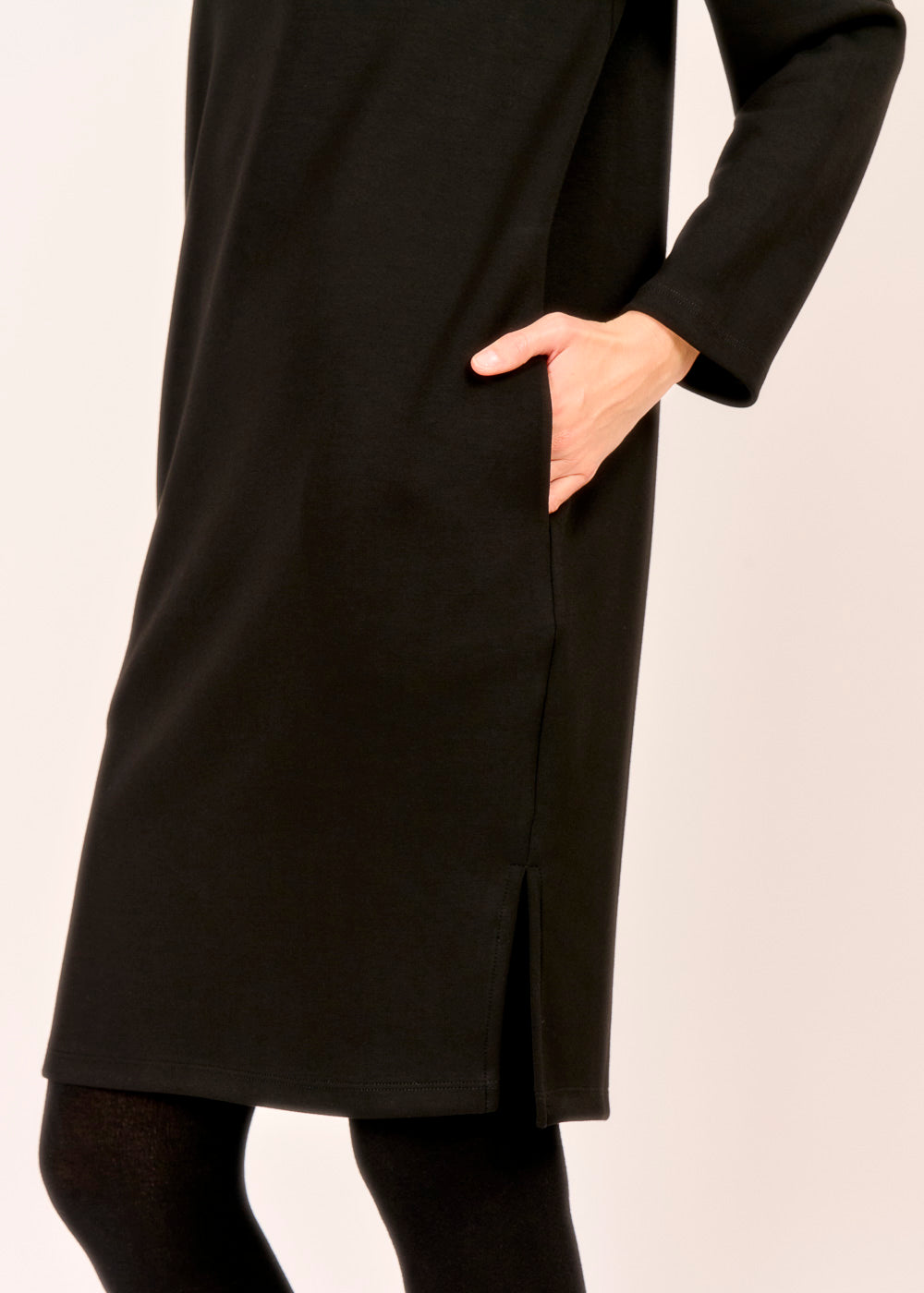 Ein Meisterstück der minimalistischen Eleganz: Dieses Kleid in tiefem Nero überzeugt durch seinen unkomplizierten Schnitt und seine zeitlose Ausstrahlung. Die schlichte Form wird durch praktische, dezente Taschen ergänzt und bietet höchsten Tragekomfort für den ganzen Tag. Ein vielseitiges Essential, das sowohl lässig mit Stiefeln als auch schick mit Accessoires kombiniert werden kann.